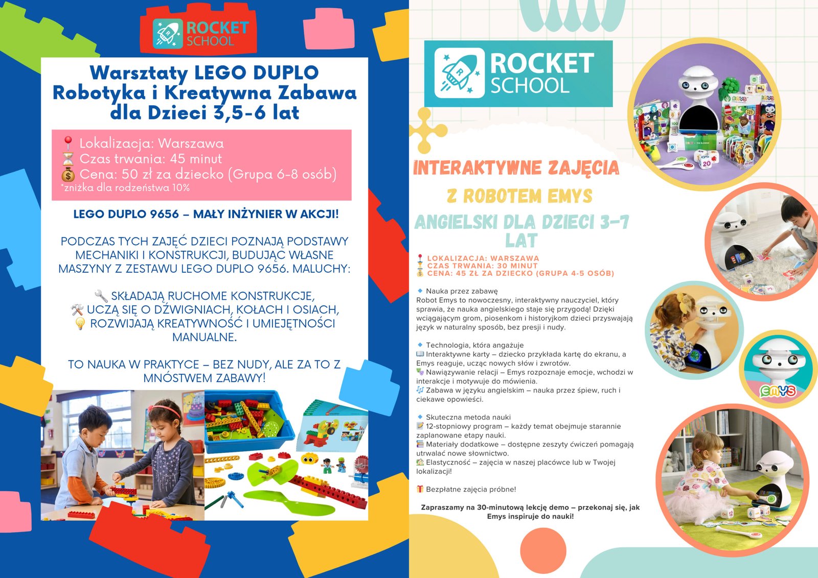 Szukasz kreatywnych i inspirujących zajęć, które urozmaicą ofertę Twojego przedszkola? W Rocket School łączymy edukację z zabawą, oferując warsztaty, które rozwijają kluczowe kompetencje u najmłodszych. Nasze zajęcia to idealny sposób na wzbogacenie programu edukacyjnego i dostarczenie dzieciom niezapomnianych wrażeń!